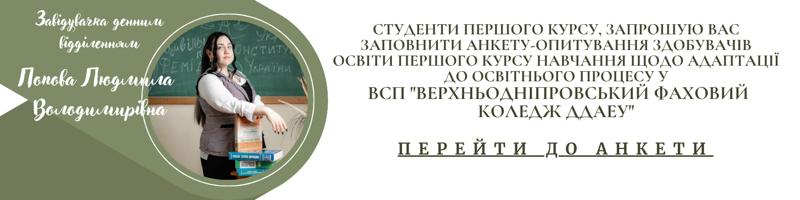 Одержувач платежу: ВСП "Верхньодніпровський фаховий коледж ДДАЕУ"