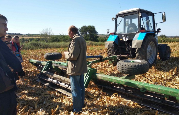 Студенти власновіч побачили технологічні процеси та сезонні польові роботи, а саме посів озимої пшениці, де використовується найсучасніша сільськогосподарська техніка, посівний комплекс французької фірми «KUHN». Це єдиний комплекс в Україні, продуктивність якого до 40 га за світловий день.Іван Олександрович розповів про технологію вирощування озимої пшениці та про підготовку ґрунту перед посівом.