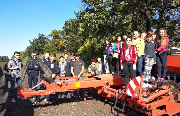 Студенти власновіч побачили технологічні процеси та сезонні польові роботи, а саме посів озимої пшениці, де використовується найсучасніша сільськогосподарська техніка, посівний комплекс французької фірми «KUHN». Це єдиний комплекс в Україні, продуктивність якого до 40 га за світловий день.Іван Олександрович розповів про технологію вирощування озимої пшениці та про підготовку ґрунту перед посівом.