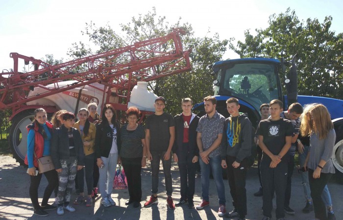 Також студенти познайомилися з такою технікою: новим польовим котком КП-9, британським завантажувачем Manitou MLT 731, оприскувачем «ELVORTI». Цим оприскувачем вносять фунгіциди, інсектициди, а також рідкі мінеральні добрива. Основний бак на 3000 літрів, бак промивочний на 200 літрів, міксер – 40 літрів, ширина захвату штанги – 24 метри. Оприскувач обладнаний автоматикою, він самостійно заходить і виходить, єдиний недолік – це те, що він сам не вимикається. Таких оприскувачів в Україні всього 50. Також на власні очі побачили як здійснюється процес протруюювання насіння озимої пшениці.