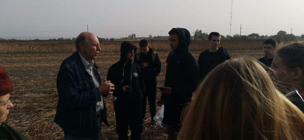 Екскурсію провів заслужений агроном та засновник СФГ "Романцівське" Іван Олександрович Романець, який повідомив про вирощування нових репродукцій соняшнику, проведення науково-виробничого досліду вивчення та визначення впливу агротехнічних заходів, систему обробітку ґрунту, про параметри сучасних елементів технології вирощування соняшнику і апробацію захисту від вовчка. Його розповідь доповнив головний агроном СТОВ "Дніпро-Н" П'яник Олександр Сергійович, який зазначив, що наявність демо-полів дозволяє аналізувати актуальну інформацію та ділитися практичними знаннями з партнерами впродовж року. Також зазначив, що студенти ВСП "ВФК ДДАЕУ" мали чудову можливість завітати на демо-поле СТОВ "Дніпро-Н" та познайомитися з гібридами соняшнику в реальних польових умовах, а також оцінити якість і вологість продукції.