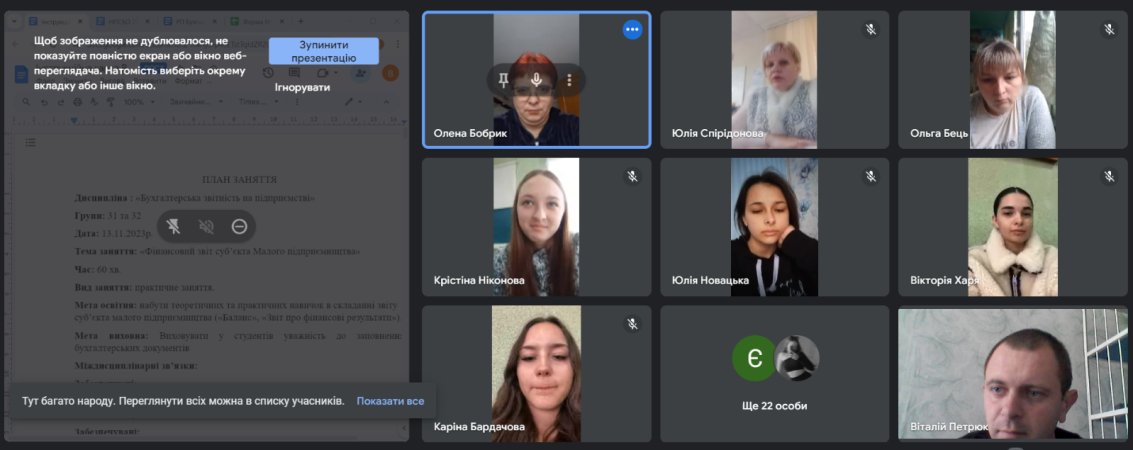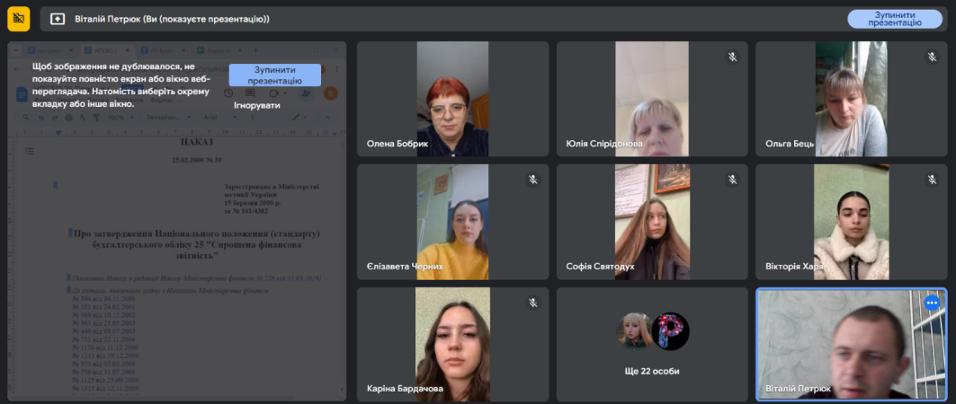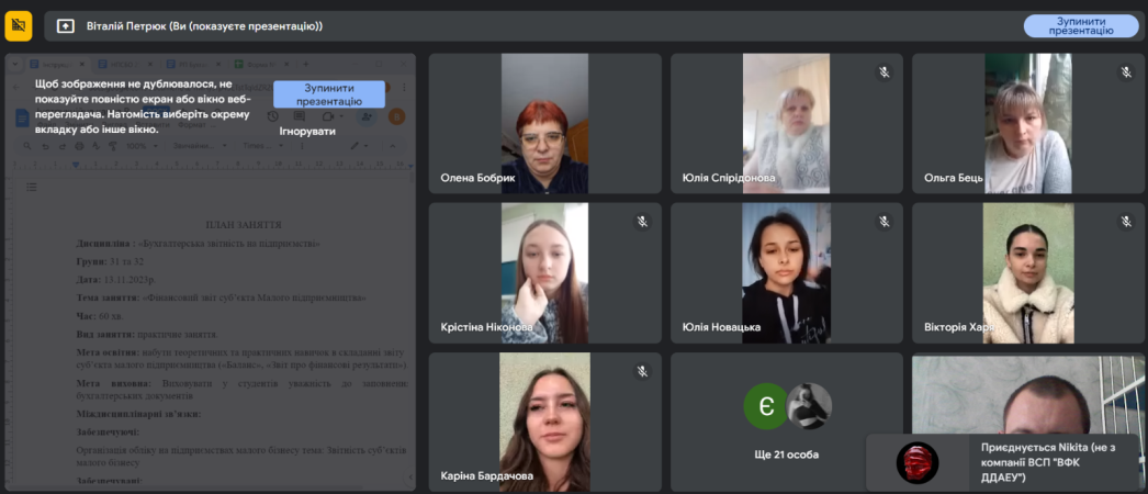 13 листопада 2023 року Викладачем обліково-фінансових та економічних дисциплін Петрюком Віталієм Вячеславовичем у групах О-2021-31, О-2021-32 було проведено відкрите практичне заняття