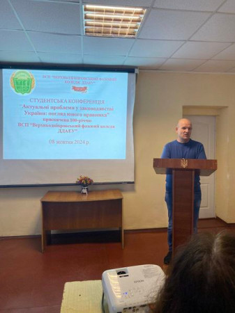 В рамках проведення тижня юридичних дисциплін 08.10.2024 року була організована студентська конференція "Актуальні проблеми у законодавстві України: погляд юного правника", присвячена 100-річчю ВСП "Верхньодніпровський фаховий коледж ДДАЕУ"!
